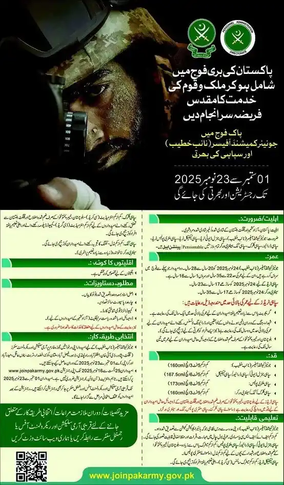 نوٹ: پاک آرمی کی ویب سائٹ چیک کریں۔ لنک اس صفحے کے آخر میں دیا گیا ہے۔