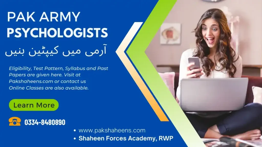 If you want to join Pak Army Psychologists job then see here basic eligibility criteria, test pattern, syllabus of initial tests, free practice tests, past papers and main responsibilities of Army Psychologists.