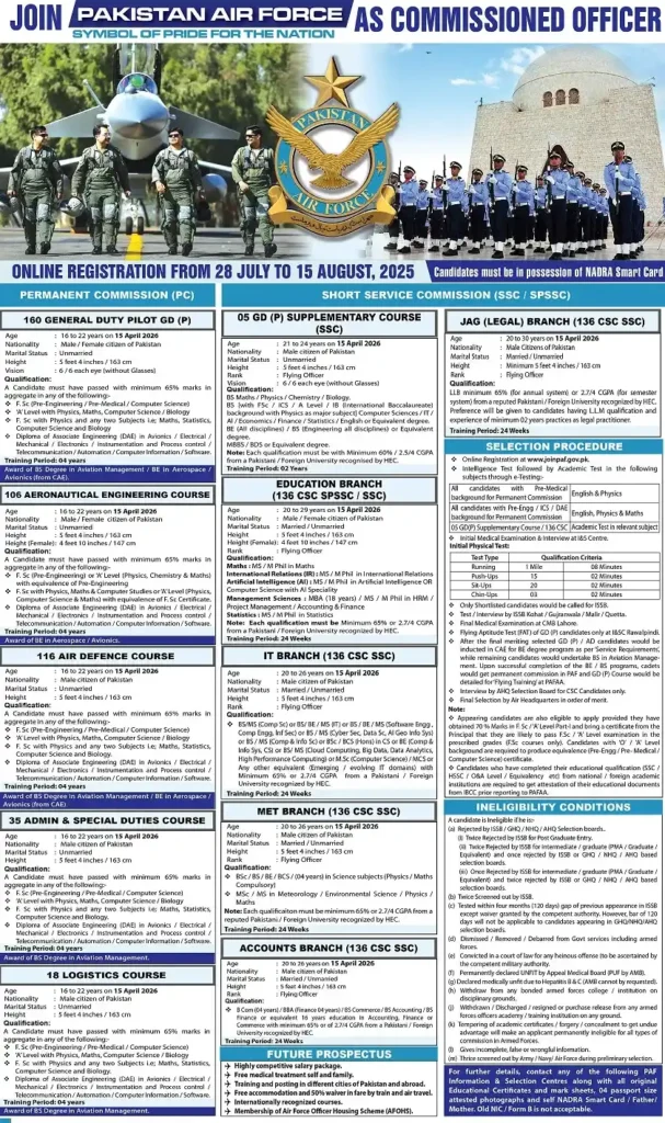 Last date of online registration in PAF Engineering Branch is 15 Aug, 2025