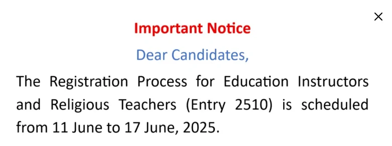 Start Date of Online Registration for PAF Religious Teachers