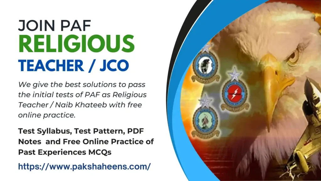The Pakistan Air Force (PAF) offers an array of job opportunities beyond combat and aviation-related positions. One such role is that of a Religious Teacher / Naib Khateeb. This role is essential for fulfilling the religious needs of PAF personnel, such as leading prayers, offering religious guidance, teaching Islamic studies, and fostering a spiritually balanced environment within PAF bases and facilities.